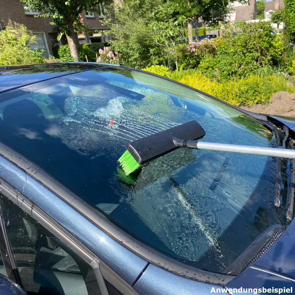 Bestehend aus drei Teilen kann der Wasserbesen bis zu 2 Meter zusammengesteckt werden, was eine komfortable Reinigung auch an schwer zugänglichen Stellen ermöglicht. Durch die weichen Borsten des Wasserbesens ist er auch für die schonende Reinigung von Fahrzeugen geeignet.