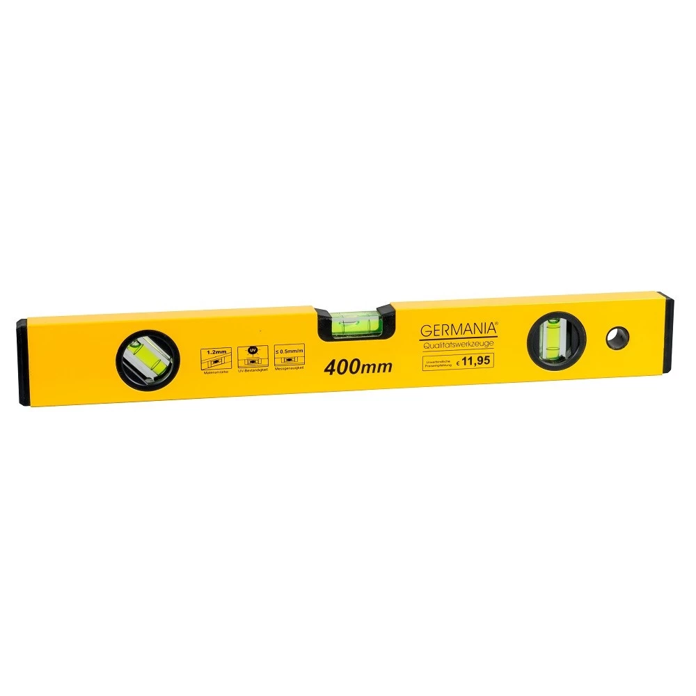 Alles gerade? Diese Frage beantwortet man am besten mit dieser GERMANIA Wasserwaage. Gleich 3 Libellen (horizontal, vertikal und diagonal) machen die Wasserwaage auch für Profis zum idealen Arbeitsgerät.